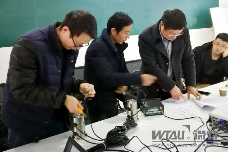 專家組成員正在對微特公司生產(chǎn)的開度荷重綜合監(jiān)控裝置進行出廠驗收