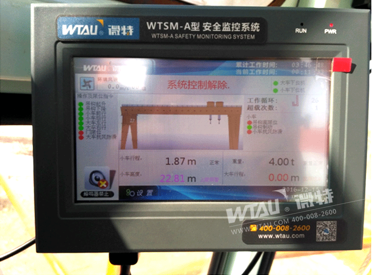 圖為微特WTSM-A型門式起重機安全監(jiān)控系統(tǒng)主機界面