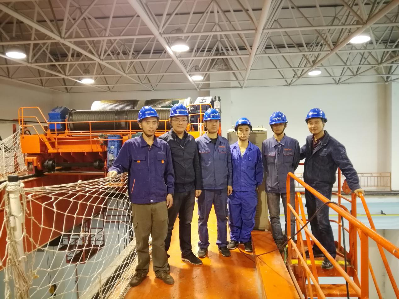 項目組成員在小峽水電站廠房1號橋機上合影