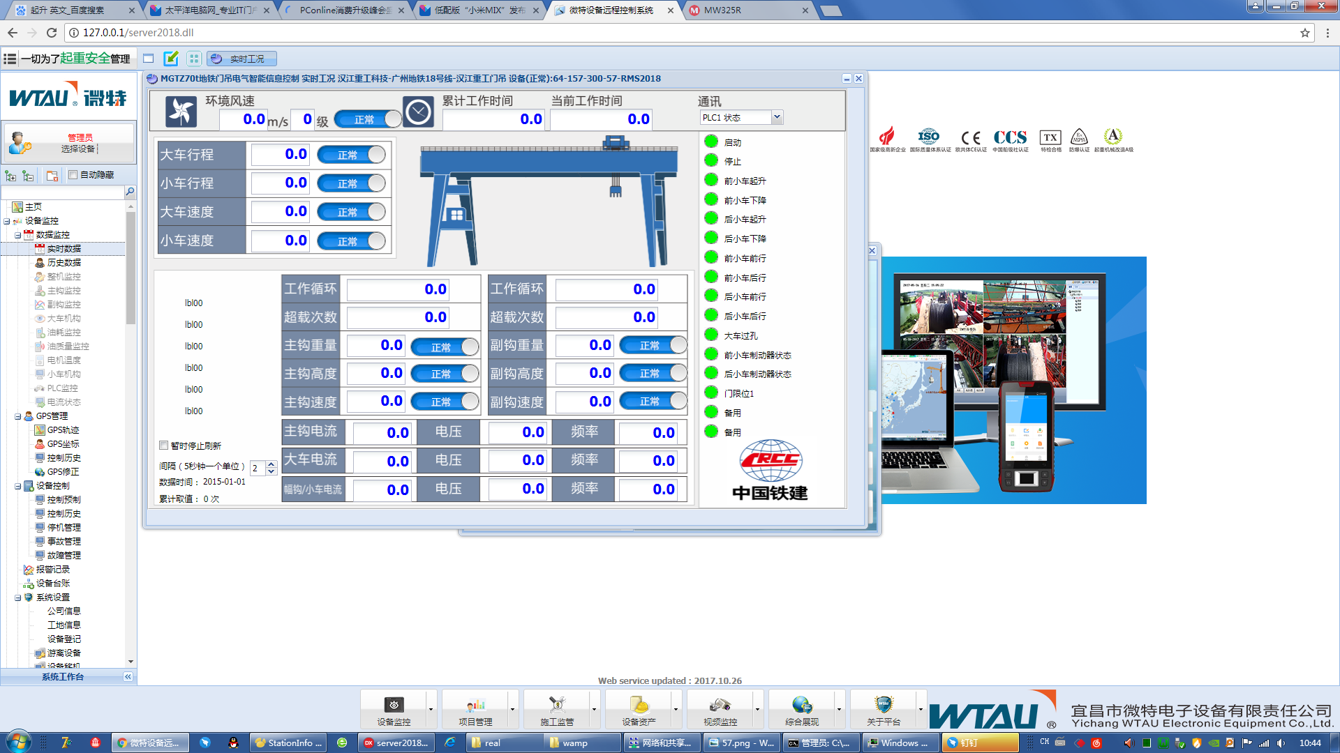 MGTZ70t地鐵門吊電氣智能信息控制系統(tǒng),包含門吊數(shù)據(jù)監(jiān)控和視頻監(jiān)控兩部分。實現(xiàn)門吊使用過程中全方位的數(shù)據(jù)監(jiān)控和關鍵部位的視頻圖像監(jiān)控以及以上數(shù)據(jù)和圖像的存儲等功能。可實現(xiàn)遠程PC電腦實時遠程查詢監(jiān)控,數(shù)據(jù)回放、曲線擬合等功能;可實現(xiàn)手機APP遠程實時查詢設備狀態(tài),數(shù)據(jù)抽取查詢等功能。