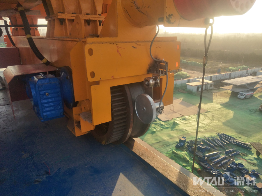 此次施工現(xiàn)場為鄭州四環(huán)繞城高架,由于工期緊張,微特技術(shù)售后安裝人員在架橋機(jī)拼裝尾期就來到了現(xiàn)場與聯(lián)東技術(shù)人員做技術(shù)交流。配裝的WTMS-A安全監(jiān)控系統(tǒng)滿足國家標(biāo)準(zhǔn)對大型吊裝設(shè)備安全監(jiān)控的要求,具有常用的通訊接口,有獨(dú)立并可擴(kuò)展的I/O功能。整機(jī)數(shù)據(jù)采用Modbus或Profibus通訊,對起重設(shè)備具有實(shí)時監(jiān)控、動態(tài)顯示、聲光顯示、數(shù)據(jù)備份以及密碼保護(hù)等功能,且該系統(tǒng)自身具有抗干擾性強(qiáng),操作界面好,通用性強(qiáng)等優(yōu)點(diǎn)。通過一周的安裝調(diào)試,微特WTSM-A安全監(jiān)控系統(tǒng)通過特檢單位驗(yàn)收并獲得用戶好評。