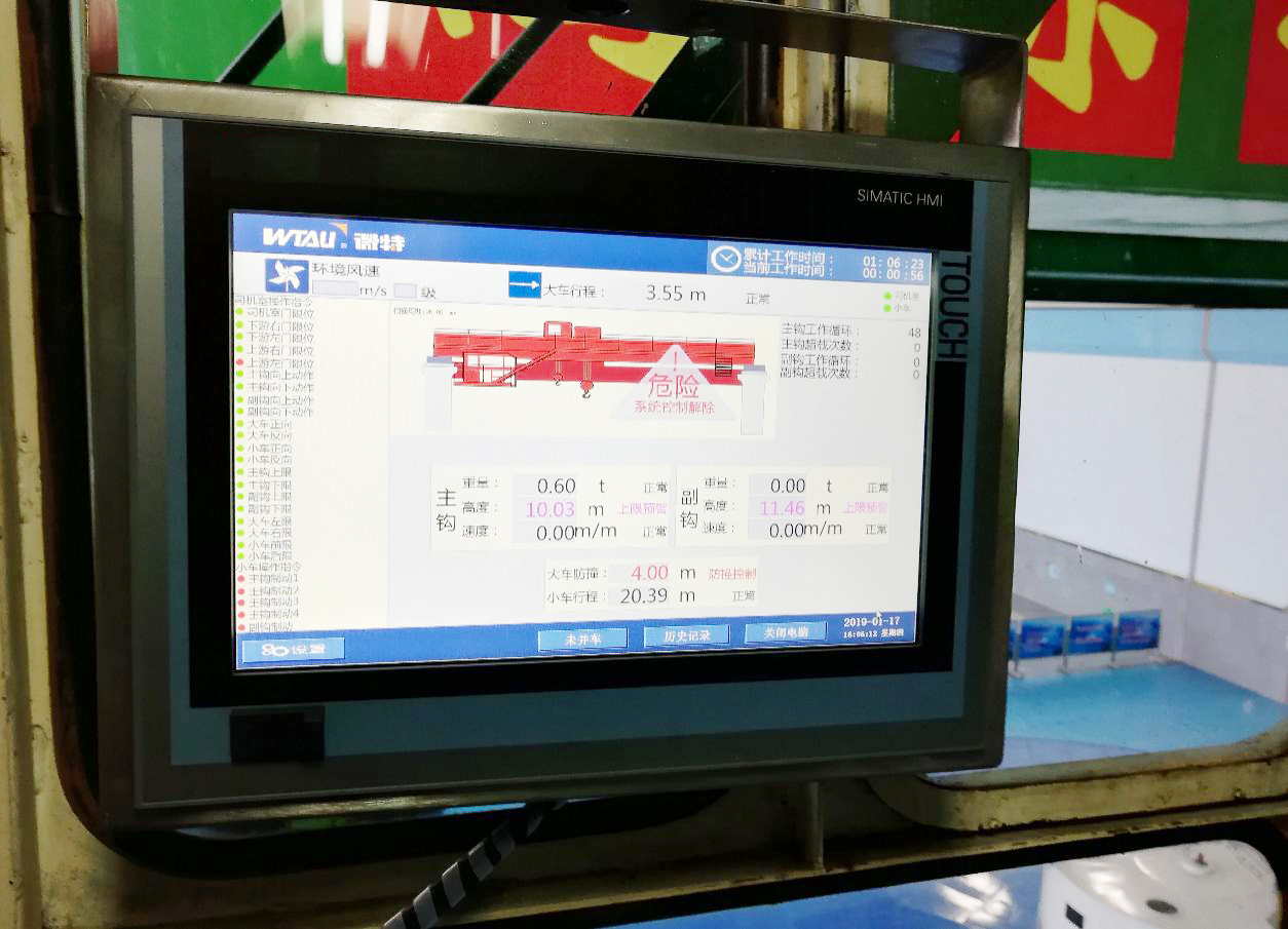 ▲WTSM-A起重機(jī)安全監(jiān)控系統(tǒng)顯示界面