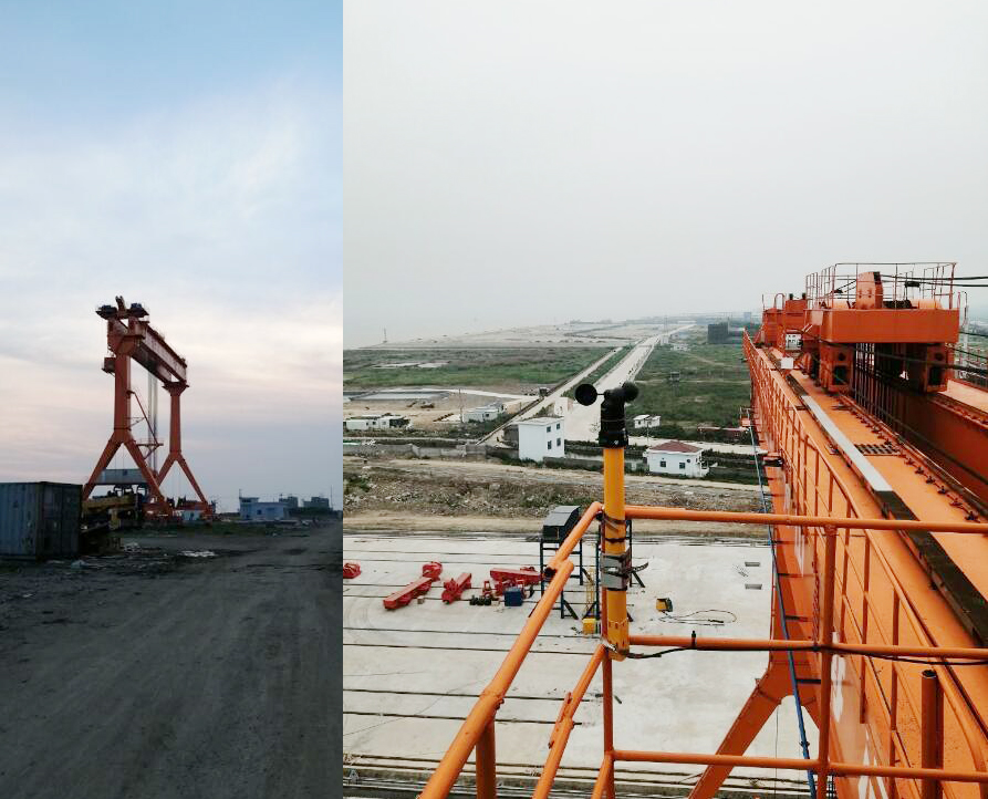現(xiàn)場(chǎng)多臺(tái)龍門吊有就地改裝,也有移機(jī)改裝,目前均已安裝完成。