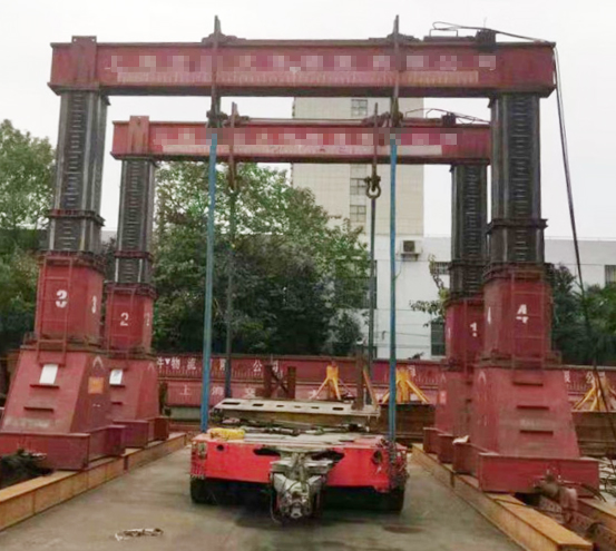 全液壓式門式起重機起重量單梁175t,雙梁起吊可達400t,整個門機使用液壓油為動力進行雙梁之間的跨度調節(jié),單梁兩鉤距的調節(jié),起升高度的調節(jié),大車軌道和起重量可根據現場起重需求任意更換,適合多種復雜環(huán)境下的作業(yè)。整機供電之后無任何電氣控制回路,各動作均為手柄操作直接驅動液壓換向閥完成。