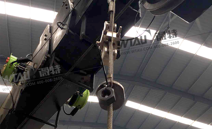 安裝在鋼絲繩固定端的重量傳感器及吊臂側(cè)面的測長角度傳感器。