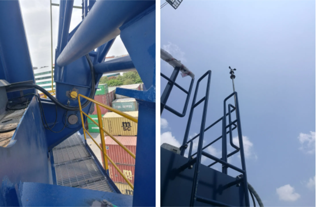 微特此次與中藝重工合作主要是為新裝固定式門座機(jī)安裝力矩限制器,在經(jīng)過項(xiàng)目前期的溝通洽談確定安裝方案后,微特售后工程師奔赴中山在現(xiàn)場人員配合下進(jìn)行儀表的安裝調(diào)試工作。