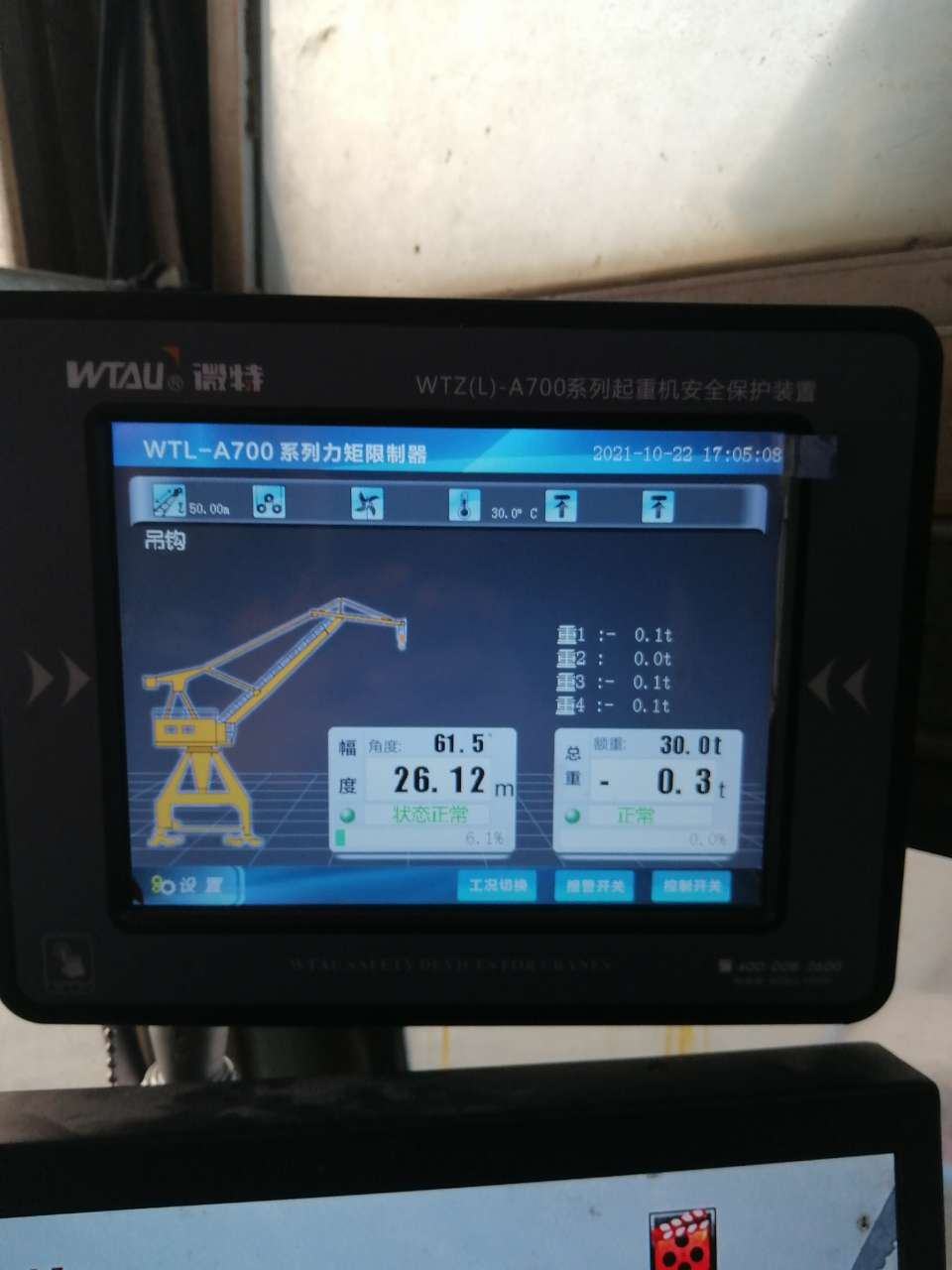 微特此次為南通中集碼頭2號門座機配裝的WTL-A(700)型起重機力矩限制器為微特自主設(shè)計研發(fā)生產(chǎn)的產(chǎn)品,是一款多功能、高性能、智能人機交互的高端起重機安全監(jiān)控裝置。產(chǎn)品擁有實時數(shù)據(jù)動態(tài)顯示、聲光報警、數(shù)據(jù)備份、斷電記憶以及密碼保護功能,且儀表本身具有抗干擾性強,操作簡單,通用性強等優(yōu)點。