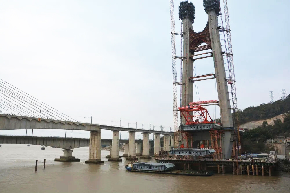 其中烏龍江特大橋位于福州倉山區(qū)和閩侯縣境內(nèi),其下游約220米就是324國道烏龍江公路橋,全長868.188米,跨324國道和烏龍江。本橋?yàn)殡p線橋,全長868.178米,共計(jì)14個(gè)墩臺(tái),總投資約1.33億元。該橋采用雙線矩形空心橋臺(tái),主跨為(144+288+144)米部分斜拉橋,為世界范圍內(nèi)同類橋型最大跨度。