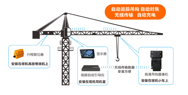 將攝像機(jī)安裝在塔式起重機(jī)大臂的最前端或者吊鉤上方,拍攝區(qū)域不會(huì)被其它物體遮擋,鏡頭可自動(dòng)追蹤吊鉤,自動(dòng)對焦,司機(jī)可清晰的看到拍攝畫面,根據(jù)拍攝畫面自主判斷吊裝情況,結(jié)合信號(hào)員的引導(dǎo)達(dá)到雙保險(xiǎn)的效果。
