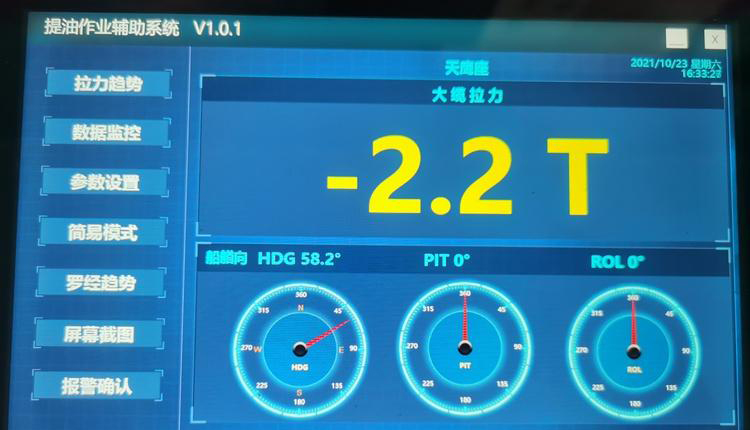 完工后微特工程師準備乘直升飛機返回陸地,現(xiàn)場負責人送別時還在向微特工程師道謝并反饋道:大攬拉力安全監(jiān)控系統(tǒng)界面顯示清晰明了,各項參數顯示一目了然。你們這套系統(tǒng)能夠實時監(jiān)控大攬的拉力和船艏向,及時的向我們工作人員預警或報警,讓我們在原油外輸作業(yè)時心里更有底了。