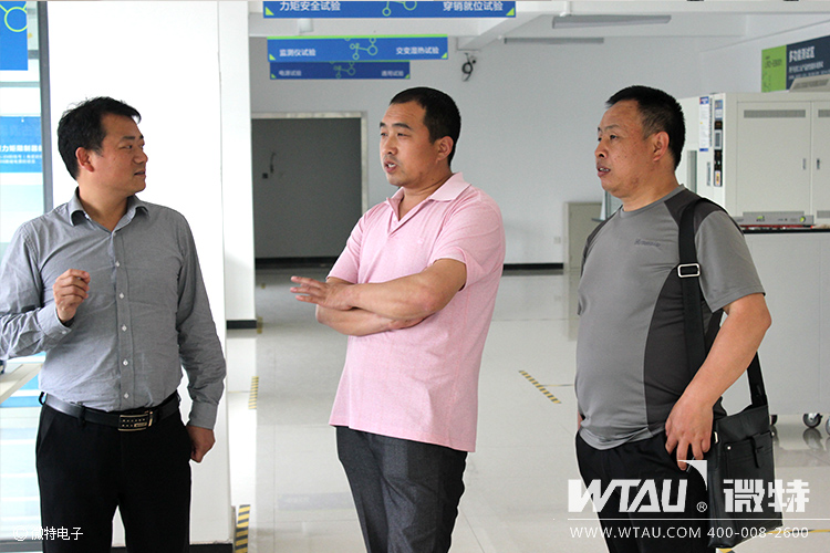 微特電子總經(jīng)理聶道靜對兩位遠(yuǎn)道而來的貴客表示歡迎,微特水電事業(yè)部經(jīng)理韓信與技術(shù)工程師劉普文向郭永崗、田國強(qiáng)詳細(xì)介紹了微特電子的發(fā)展歷程及產(chǎn)品技術(shù)。同時還一同來到微特建設(shè)的智能吊裝設(shè)備研發(fā)檢測中心,參觀高溫老化實(shí)驗機(jī)、雷擊浪涌、靜電測試、振動實(shí)驗等實(shí)驗檢測設(shè)備。這些實(shí)驗設(shè)備是微特電子高品質(zhì)產(chǎn)品的保證,確保每一臺出廠的設(shè)備都是百分百合格。