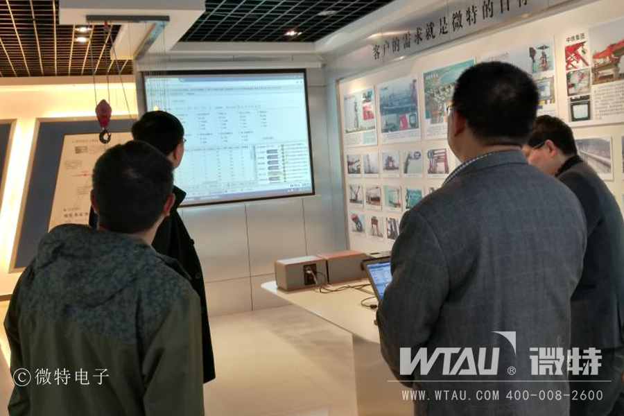 在三樓微特電子專業(yè)展示廳微特電子技術(shù)總監(jiān)高鈺敏向大家現(xiàn)場展示了起重機安全監(jiān)控系統(tǒng)遠程監(jiān)控管理平臺,真實查看了在線監(jiān)控起重機的實時狀況,并對微特安全監(jiān)控系統(tǒng)遠程平臺進行了現(xiàn)場操作和講解。來訪貴賓切身感受到微特電子的專業(yè)技術(shù)與實力走在國內(nèi)前列。