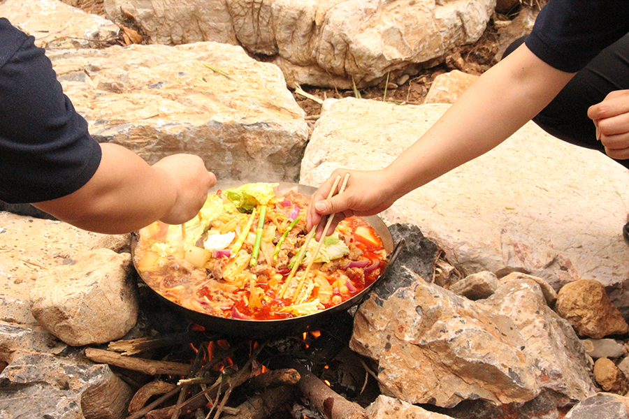 下午十多公里的山路要走,即使是野炊各隊安排的伙食也是非常的豐富。