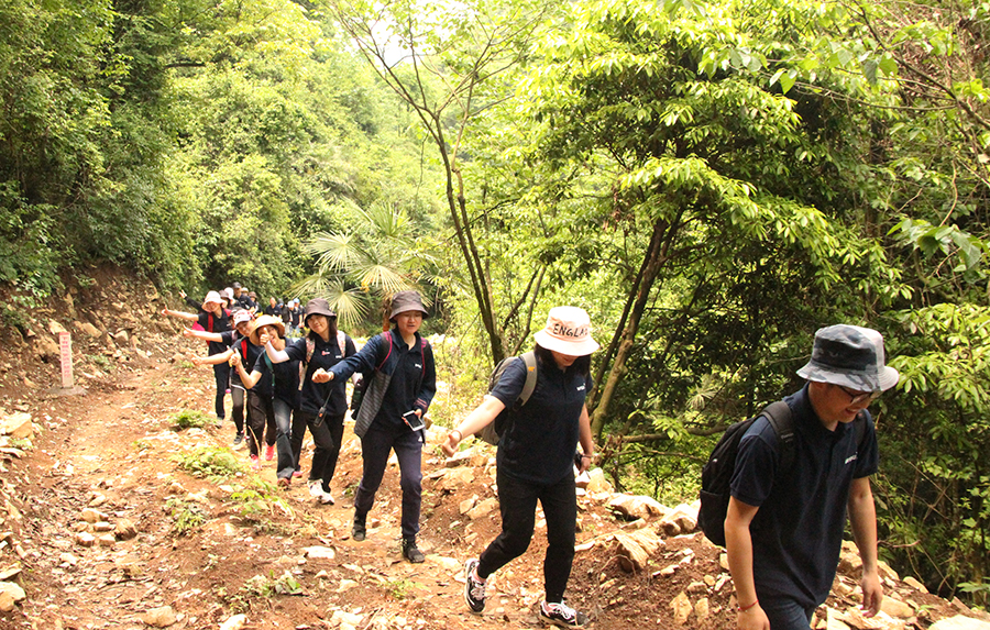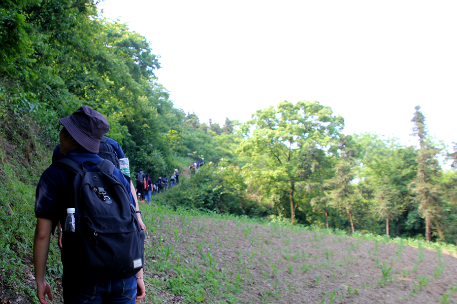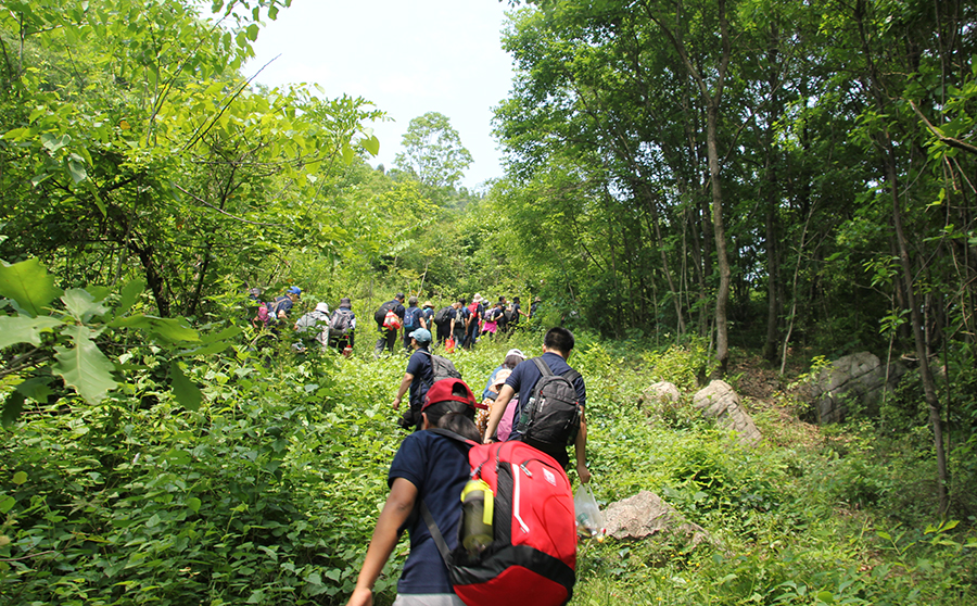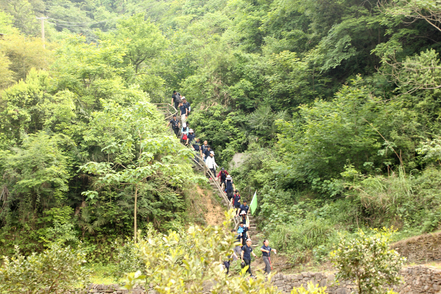 野炊結束各隊稍作休整即開始出發(fā),走在山澗的小路上,歡樂的隊伍打破了安靜的山林。