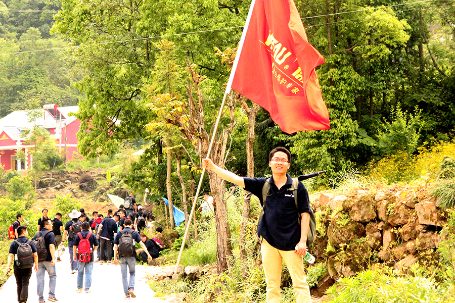 “一個人可以走的很快,一群人才可以走的很遠。我們團隊可能不是走的最快的,但是我們是走的最快樂的,在拓展過程中,我們享受著“人肉無人機“的攝影,露天的MC喊麥,各種走心的網紅抖音拍攝,在快樂中進前行,在行走中修煉堅定的心性……”