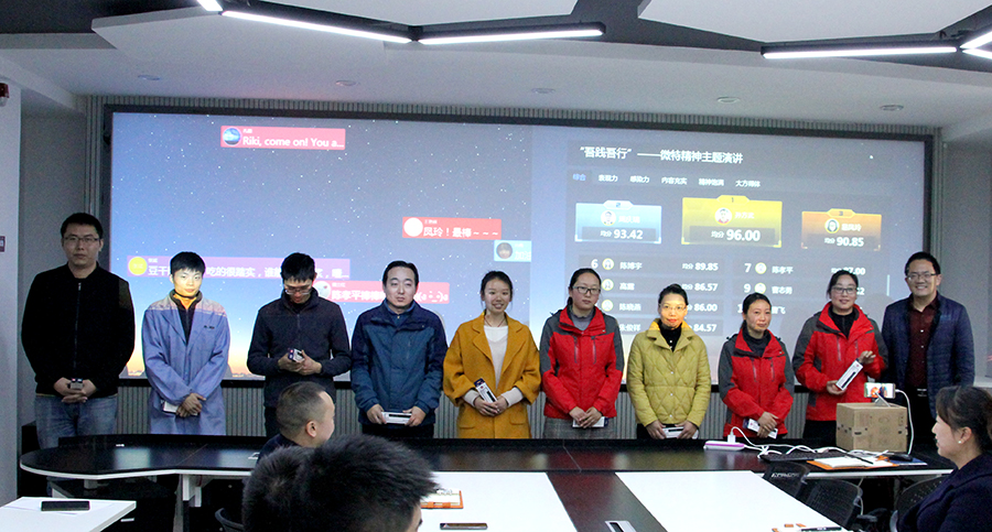 2018年11月17日,2018“吾踐吾行”微特精神主題演講賽在公司隆重舉行,總經理聶道靜和各部門主管參加活動并做為評委對演講者評分。此次比賽在公司內部全程網絡直播,很多出差在外的人員也可以與現(xiàn)場互動。此次活動各部門積極踴躍參與,優(yōu)選出12名參賽選手現(xiàn)場演講,選手們結合微特精神闡述了自己一年以來對工作的感悟和啟發(fā)。