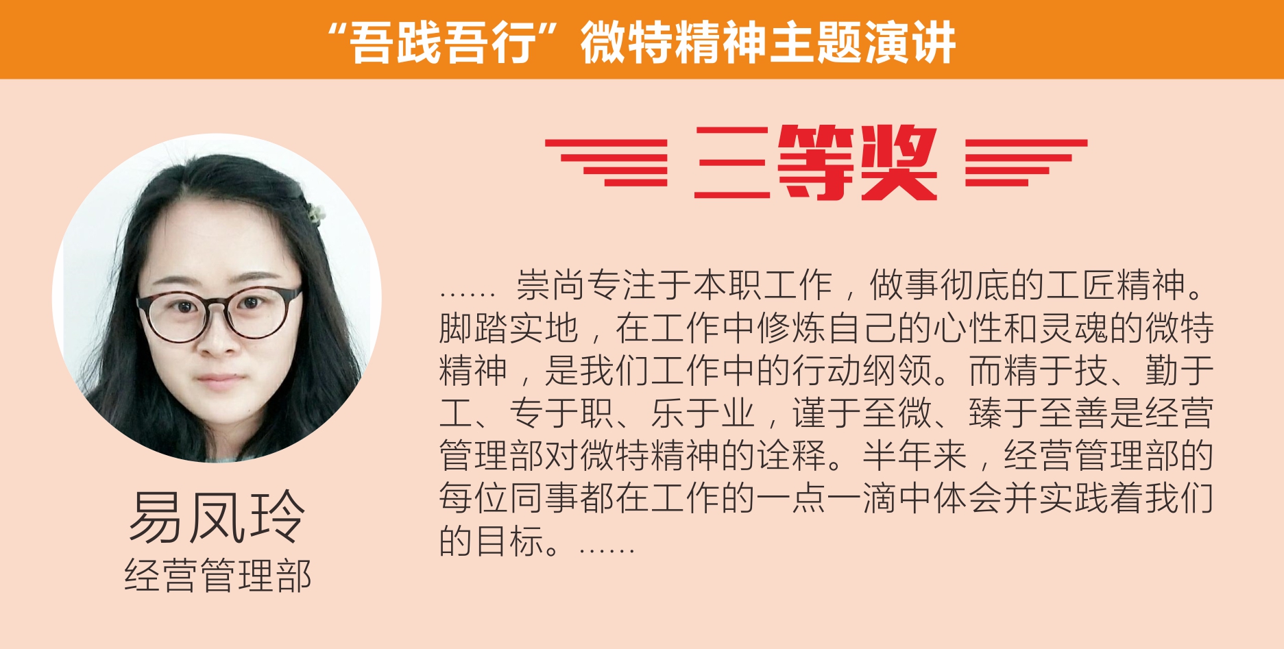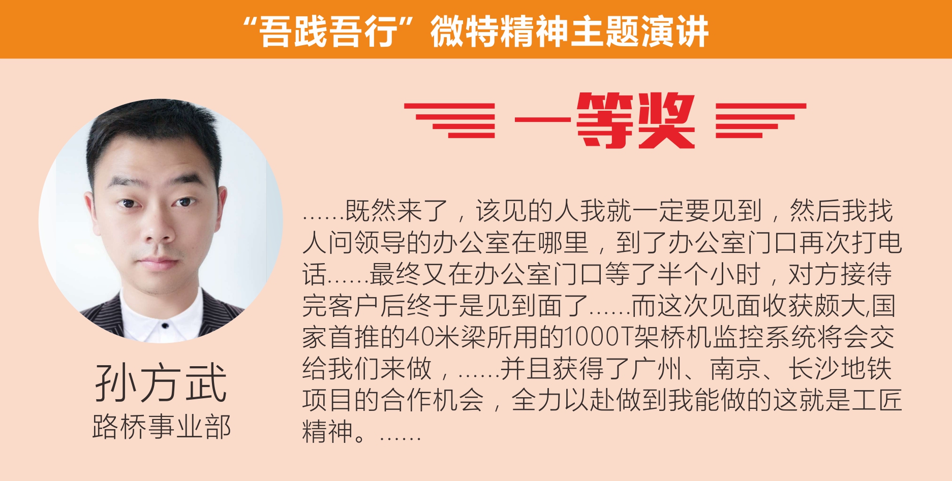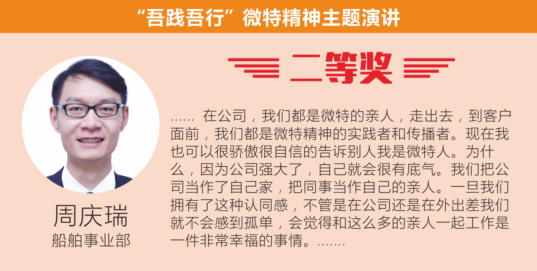 最后,聶總做了總結性發(fā)言。他對選手們精彩演講表示祝賀,對于公司員工在工作中能對微特精神有如此深的感悟甚是欣慰,對此次活動表示了充分肯定。他希望公司員工能積極參加類似活動,鍛煉自我、增強自信,在工作中繼續(xù)發(fā)揚微特精神。