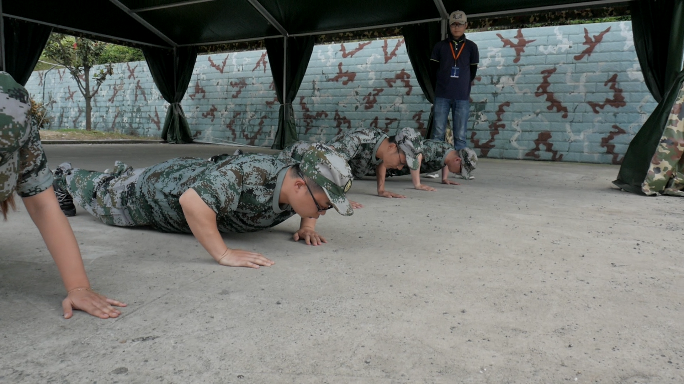 在成果匯報(bào)演練過程中,所有隊(duì)伍在細(xì)節(jié)方面均出現(xiàn)遺漏。初次成果匯報(bào)演練全軍覆沒,均被判定為不合格。教官認(rèn)定為團(tuán)隊(duì)錯(cuò)誤,要求各隊(duì)隊(duì)長(zhǎng)與指導(dǎo)員在每位隊(duì)員前做10個(gè)俯臥撐并對(duì)隊(duì)員說:請(qǐng)你認(rèn)真一點(diǎn)!此次,隊(duì)長(zhǎng)和指導(dǎo)員各自領(lǐng)到了140到160個(gè)俯臥撐。