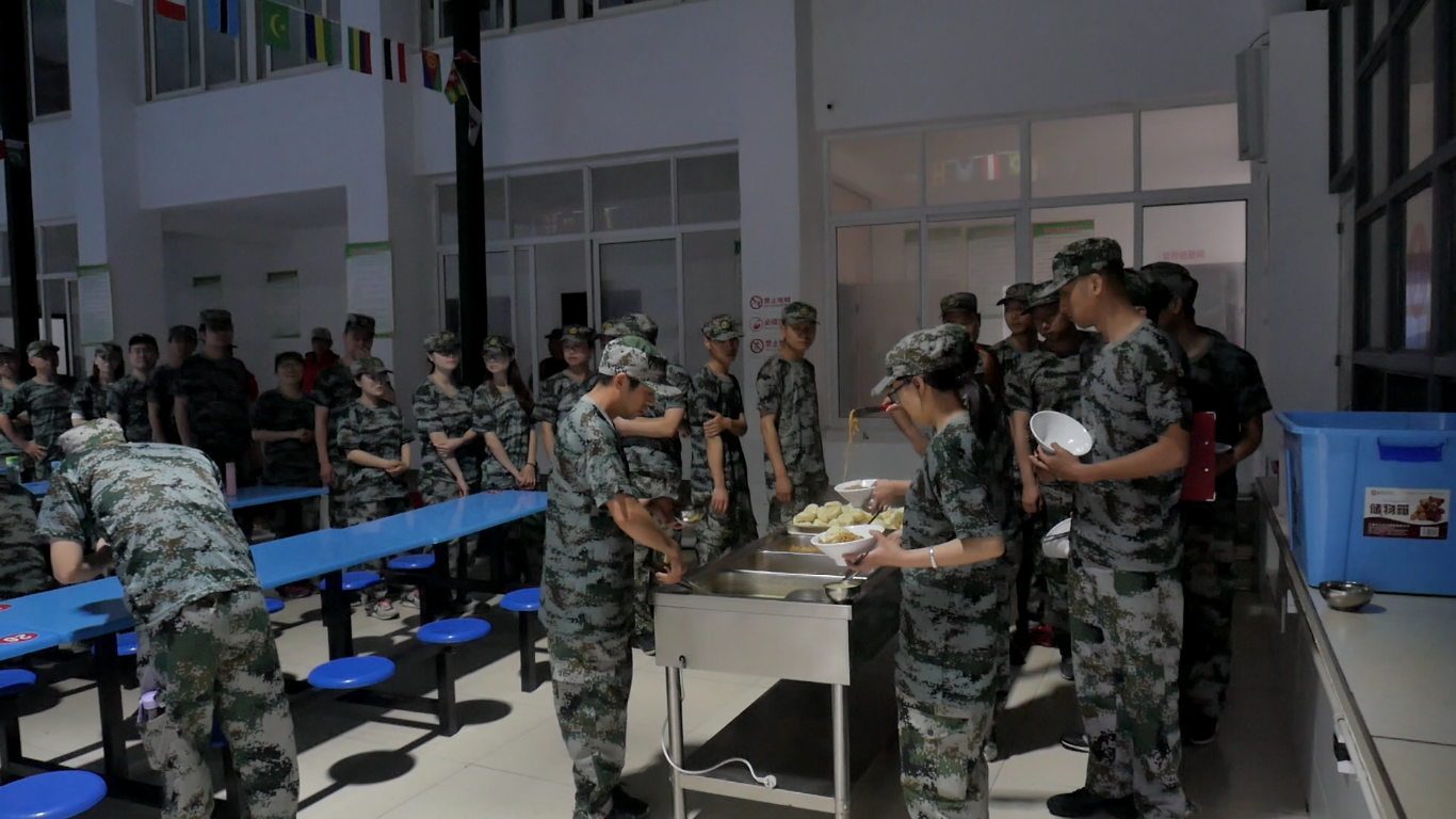 晨練完成后,便是早餐時(shí)間了。早餐有三點(diǎn)要求:一是排隊(duì)打餐,二是不允許浪費(fèi),吃多少,打多少;三是吃飯時(shí)間不能講話。