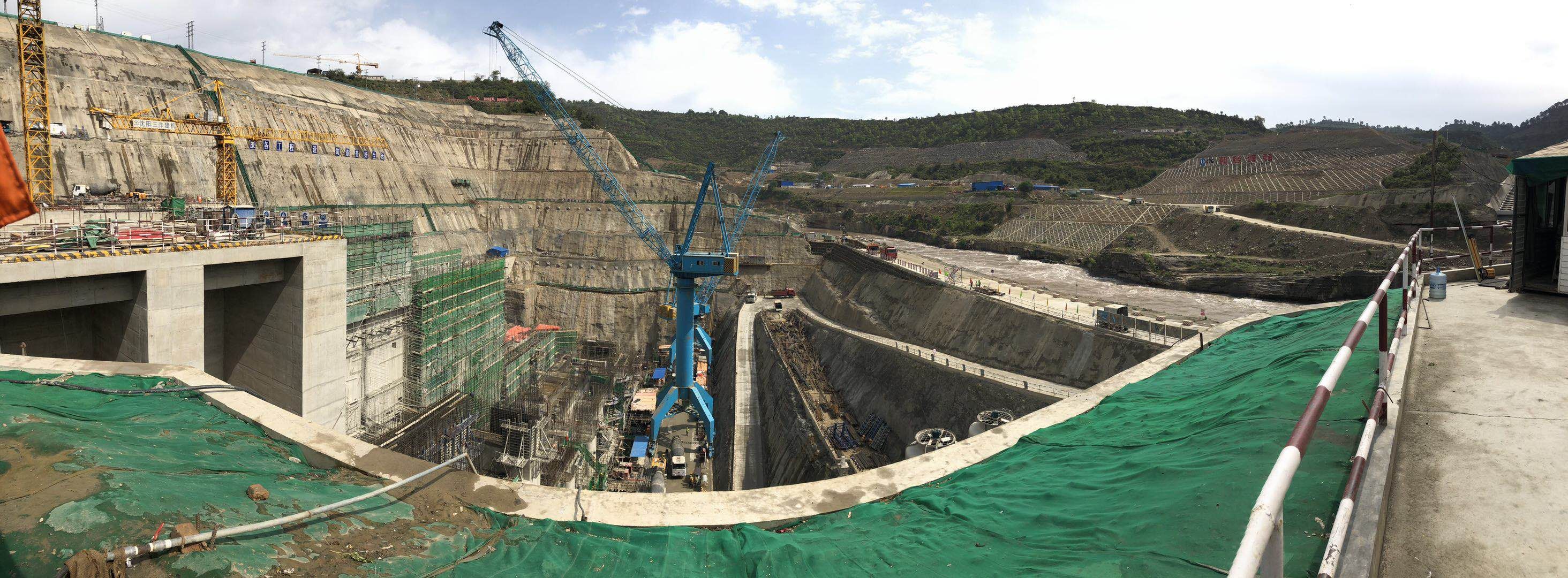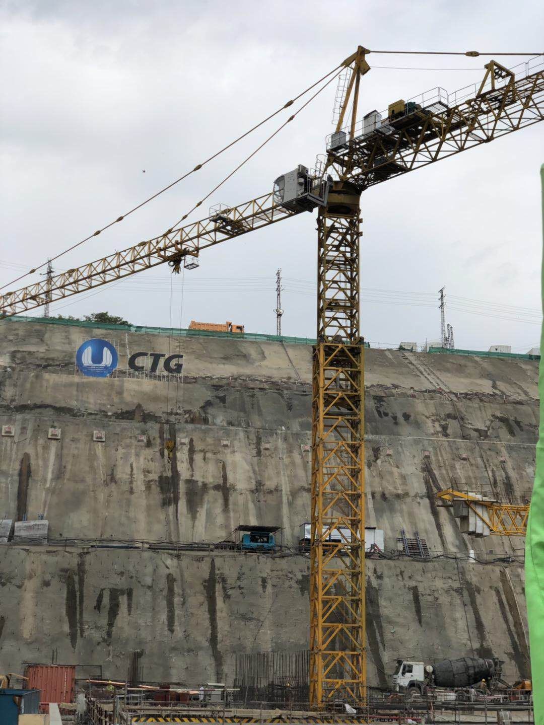 ▲卡洛特水電站現(xiàn)場施工塔機(jī)及門座式起重機(jī)