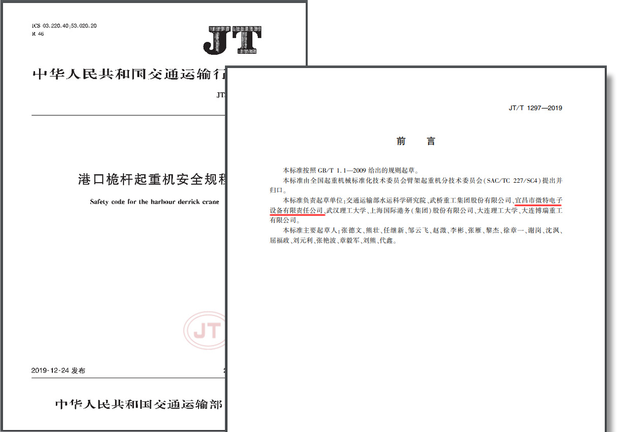 ▲《港口桅桿起重機安全規(guī)程》前言頁的標(biāo)準(zhǔn)起草單位一欄可見微特公司