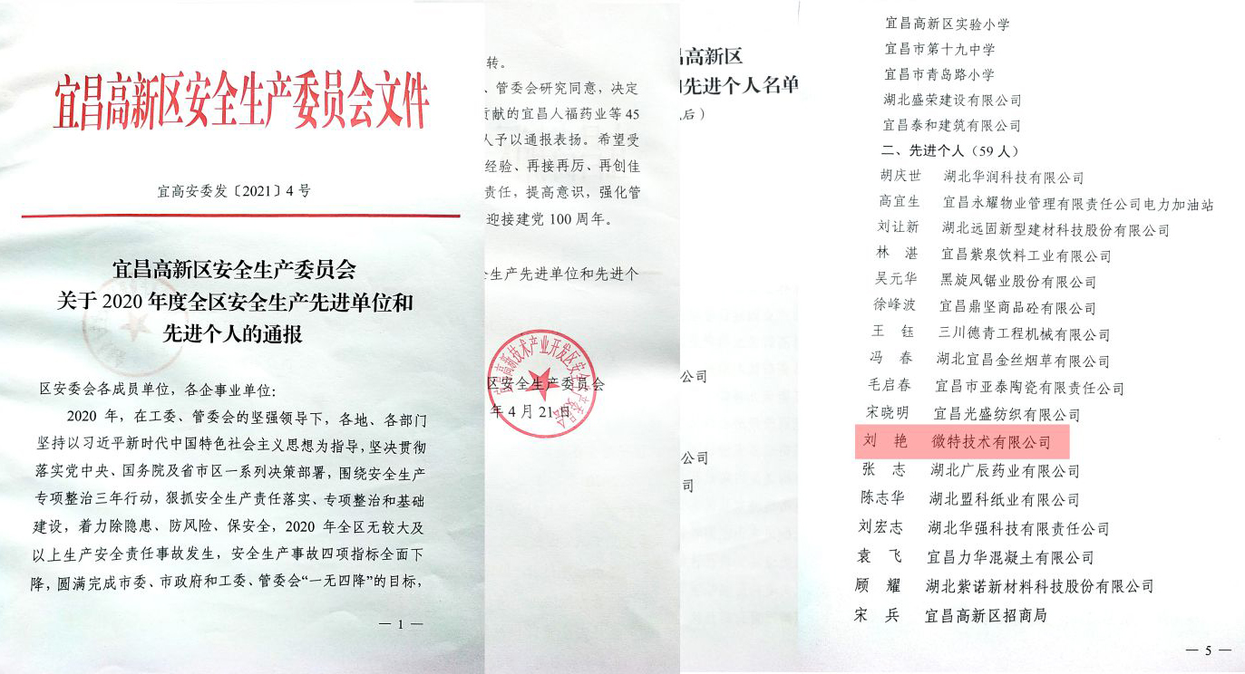 為肯定成績(jī),激勵(lì)先進(jìn),經(jīng)過工委、管委會(huì)研究同意,會(huì)上對(duì)2020年度安全生產(chǎn)工作作出突出貢獻(xiàn)的59名先進(jìn)個(gè)人予以了通報(bào)表?yè)P(yáng),微特技術(shù)有限公司訂單保障中心總經(jīng)理劉艷被授予“安全生產(chǎn)先進(jìn)個(gè)人”稱號(hào)。