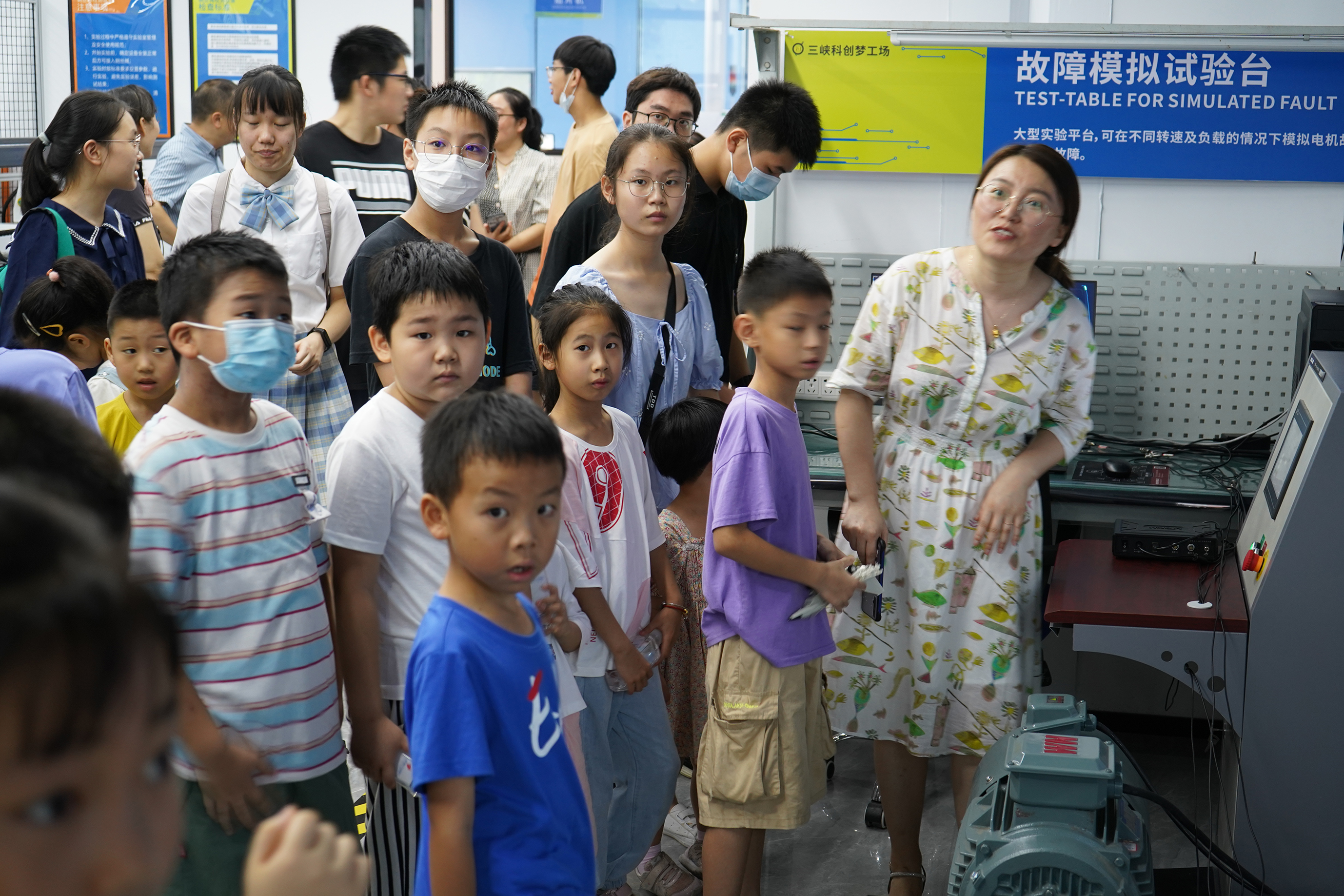 第二站孩子們來到了三峽眾創(chuàng)工坊,在這里孩子們參觀了電路板自動化生產(chǎn)過程,也各自動手體驗了簡易電路板的制作,在機械故障模擬試驗臺了解了機械設(shè)備生病后我們是如何檢測的。