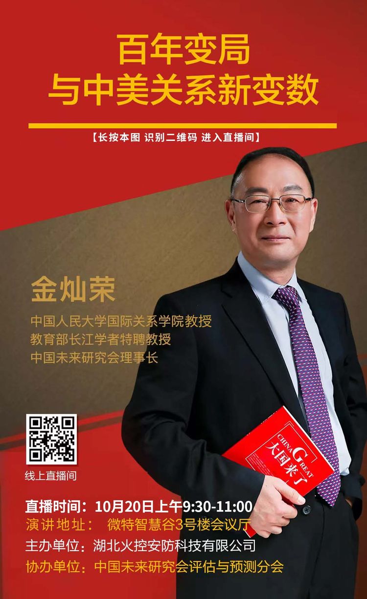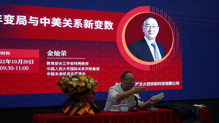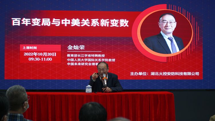 10月20日上午,“百年變局與中美關(guān)系新變數(shù)”專題講座在微特智慧谷會(huì)議廳成功舉行。此次活動(dòng)由湖北火控安防科技有限公司主辦,微特智慧谷協(xié)辦,邀請(qǐng)教育部長(zhǎng)江學(xué)者特聘教授、中國未來研究會(huì)理事長(zhǎng)、中國人民大學(xué)國際關(guān)系學(xué)院金燦榮教授為主講嘉賓。本次講座吸引200余名聽眾到場(chǎng),會(huì)場(chǎng)座無虛席,同時(shí)全網(wǎng)實(shí)時(shí)直播。
