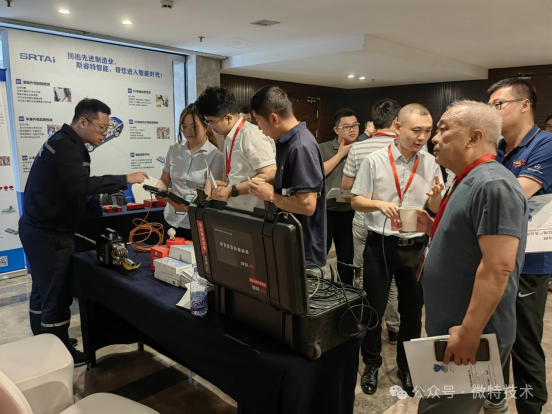 交流會現(xiàn)場微特的鋼絲繩在線檢測、起重機旋轉部件故障診斷分析、IA視覺等產(chǎn)品受到行業(yè)用戶的廣泛關注和青睞。