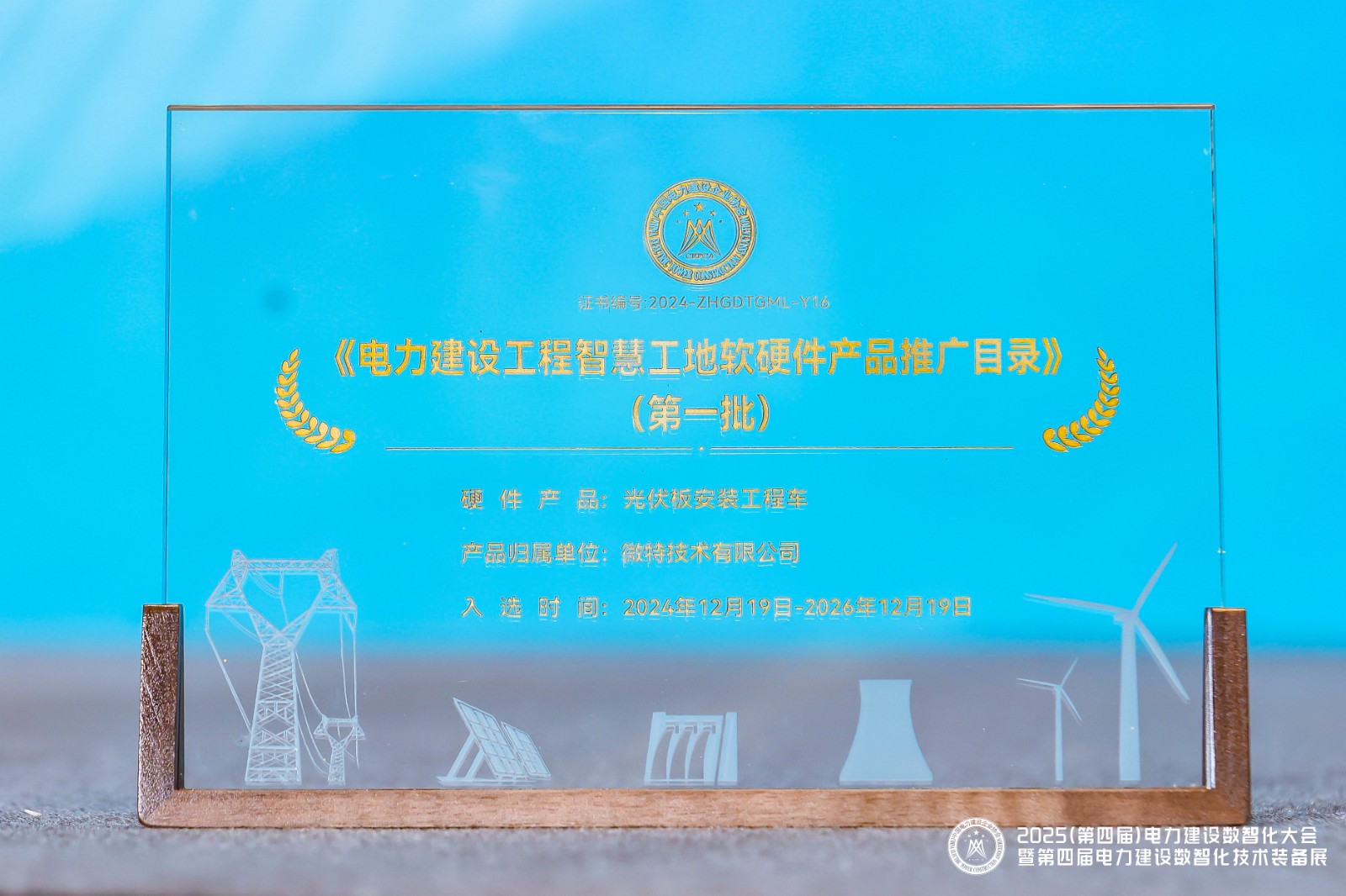 微特光伏板安裝工程車入選電力建設(shè)工程智慧工地全軟硬件產(chǎn)品推廣目錄。