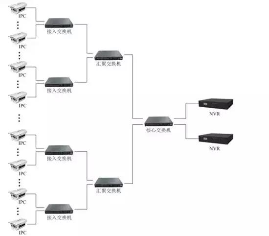 針對于 9-50個點的中小型工程,僅僅采用百兆交換機是遠遠不夠的,需要更高性能的二層全千兆交換機作為匯聚,才能保證視頻信息的流暢傳輸。