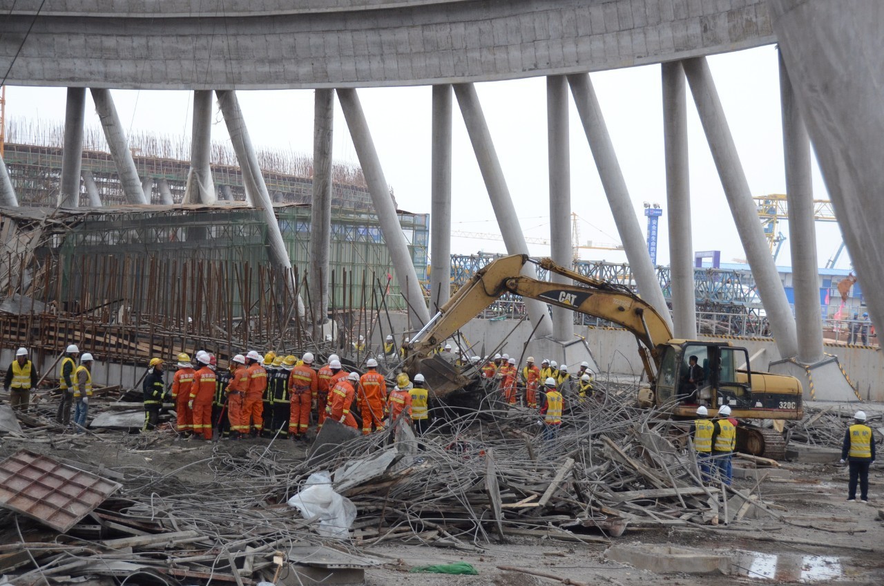 對(duì)冷卻塔的施工,是一個(gè)土建的施工。因?yàn)樗芨?,需要搭一個(gè)平臺(tái)一層一層地上去。這個(gè)平臺(tái)上面要施工,所以要站人,底下有一些通道,上面的平臺(tái)塌了之后,等于直接把通道壓塌了,通道下面有作業(yè)人員。