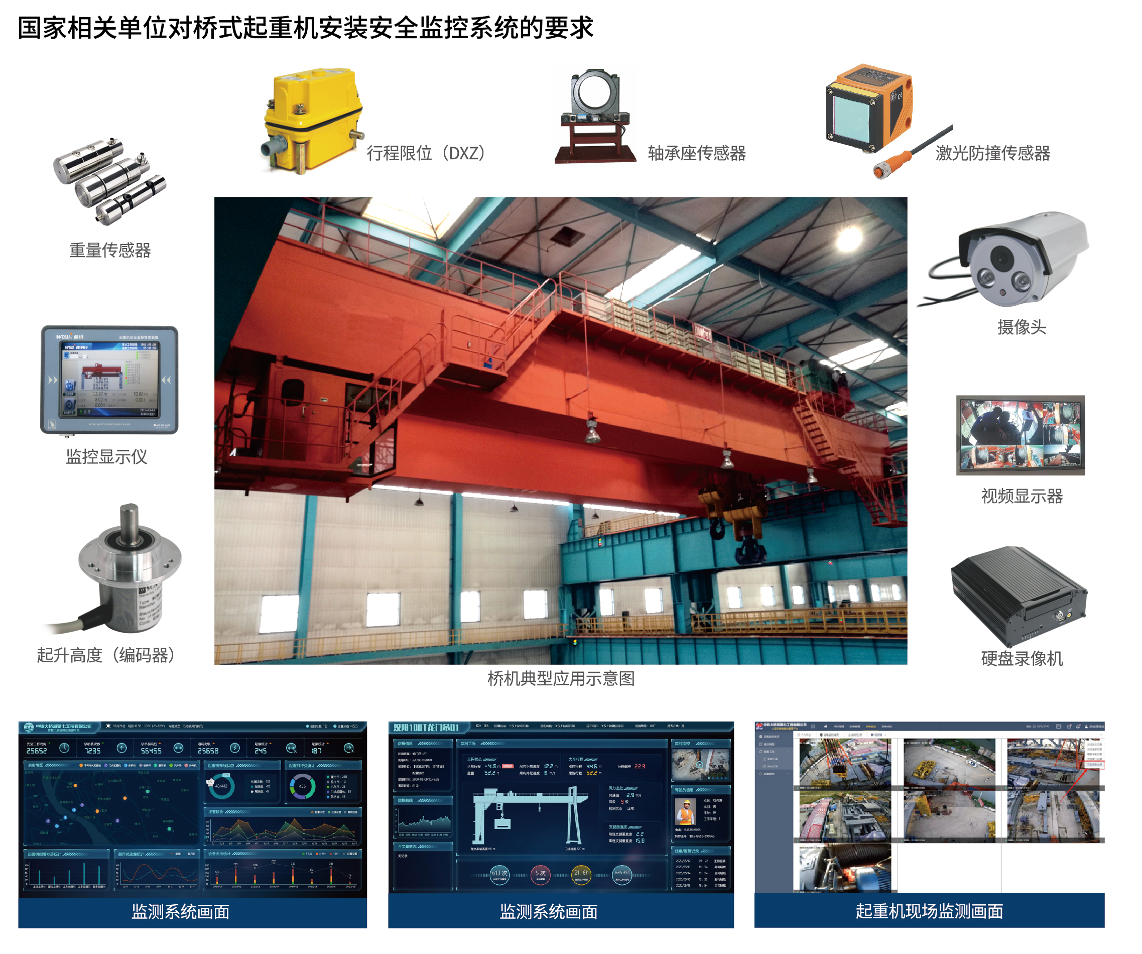 因此,起重機就需要安裝一套對吊機的各個工作環(huán)節(jié),各個安全點,各類工況,各類指令的綜合性的安全監(jiān)控系統(tǒng), 用來保證起重設(shè)備的安全運行,操作人員的安全,提高工作效率,降低安全隱患。