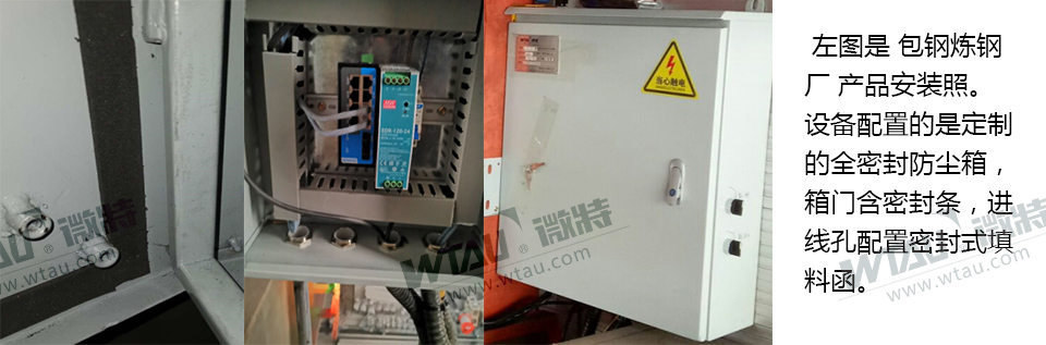 信號(hào)采集設(shè)備安裝在密封防塵防護(hù)箱中。防塵箱設(shè)計(jì)有防塵密封條,進(jìn)線孔配置密封環(huán)、填料函,對(duì)現(xiàn)場(chǎng)的金屬粉塵、金屬氧化膜、煙塵隔離,保障信號(hào)采集設(shè)備不受環(huán)境影響。