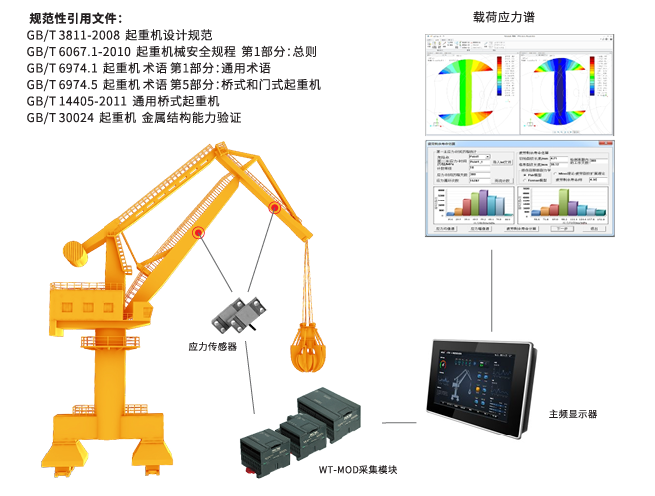 門座式起重機(jī)應(yīng)力在線監(jiān)測系統(tǒng),是根據(jù)結(jié)構(gòu)應(yīng)力和材料強(qiáng)度計(jì)算開發(fā)制造的能實(shí)時(shí)監(jiān)測、顯示主臂在各種載荷