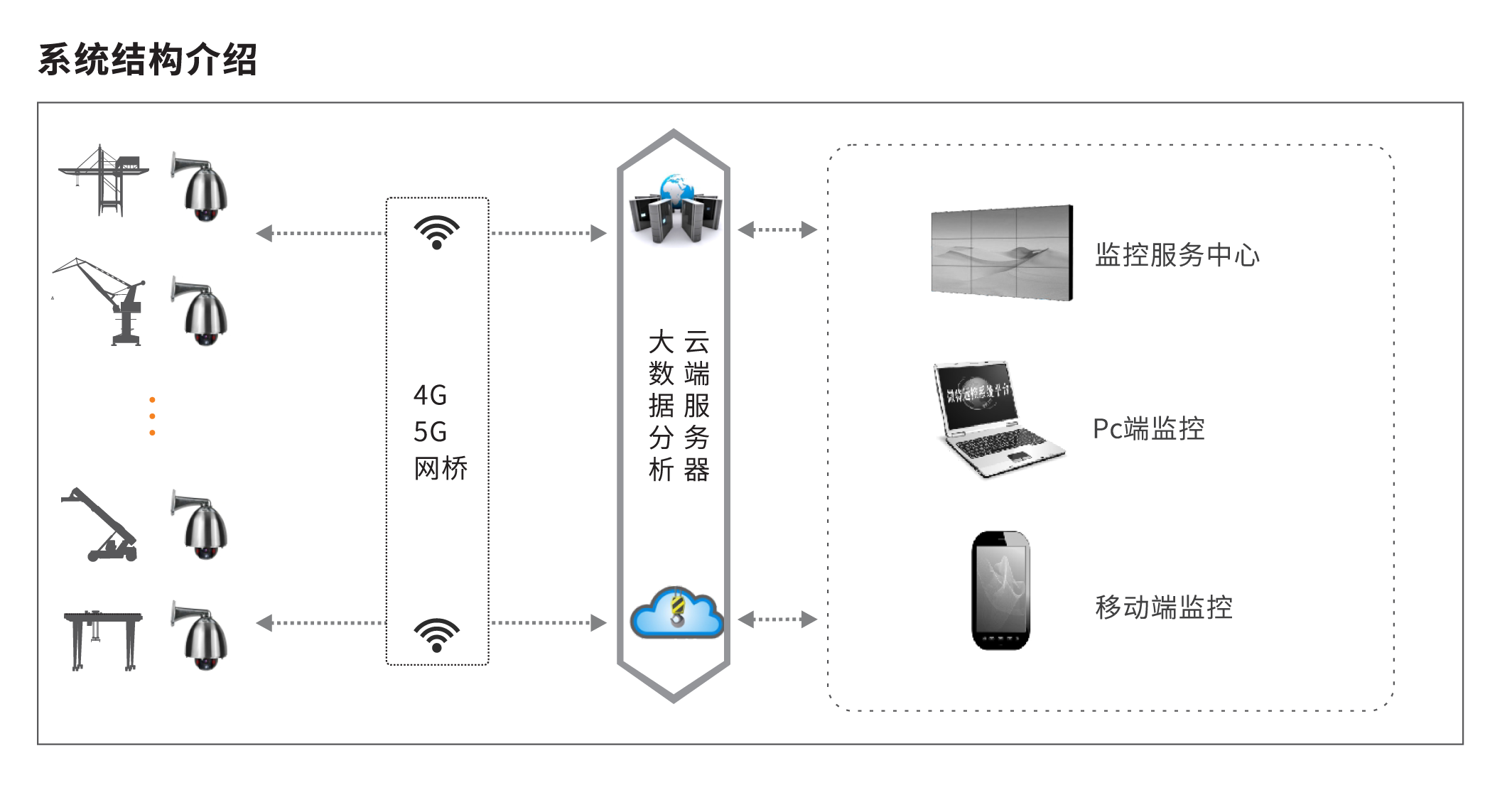 1、 采用4G/5G移動(dòng)網(wǎng)絡(luò)設(shè)備方式傳輸,即在每個(gè)現(xiàn)地工作站配置1臺(tái)4G無線傳輸設(shè)備,配置數(shù)據(jù)流量卡,現(xiàn)地工作 站將數(shù)據(jù)傳輸至移動(dòng)網(wǎng)絡(luò),進(jìn)客戶服務(wù)器,用戶端登錄服務(wù)器瀏覽數(shù)據(jù)。視頻數(shù)據(jù)流量大。