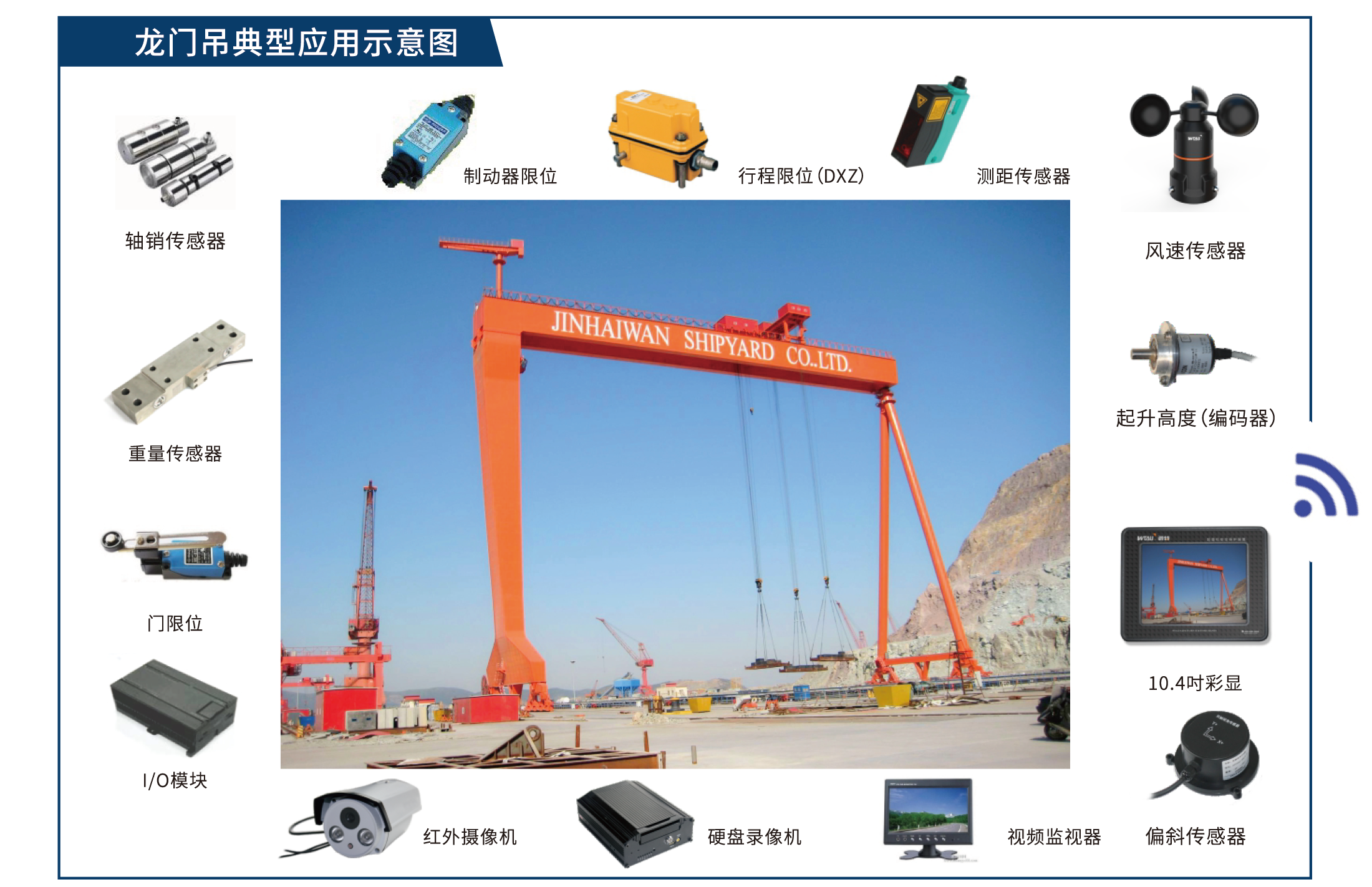 造船龍門吊是造船廠的主要生產(chǎn)工具,也是大噸位的特種起重安全設(shè)備。設(shè)備在日常生產(chǎn)使用中,不僅需要配置起 重量安全保護裝置,大噸位的起重機還應(yīng)安裝滿足國標(biāo)的安全監(jiān)控管理系統(tǒng)。