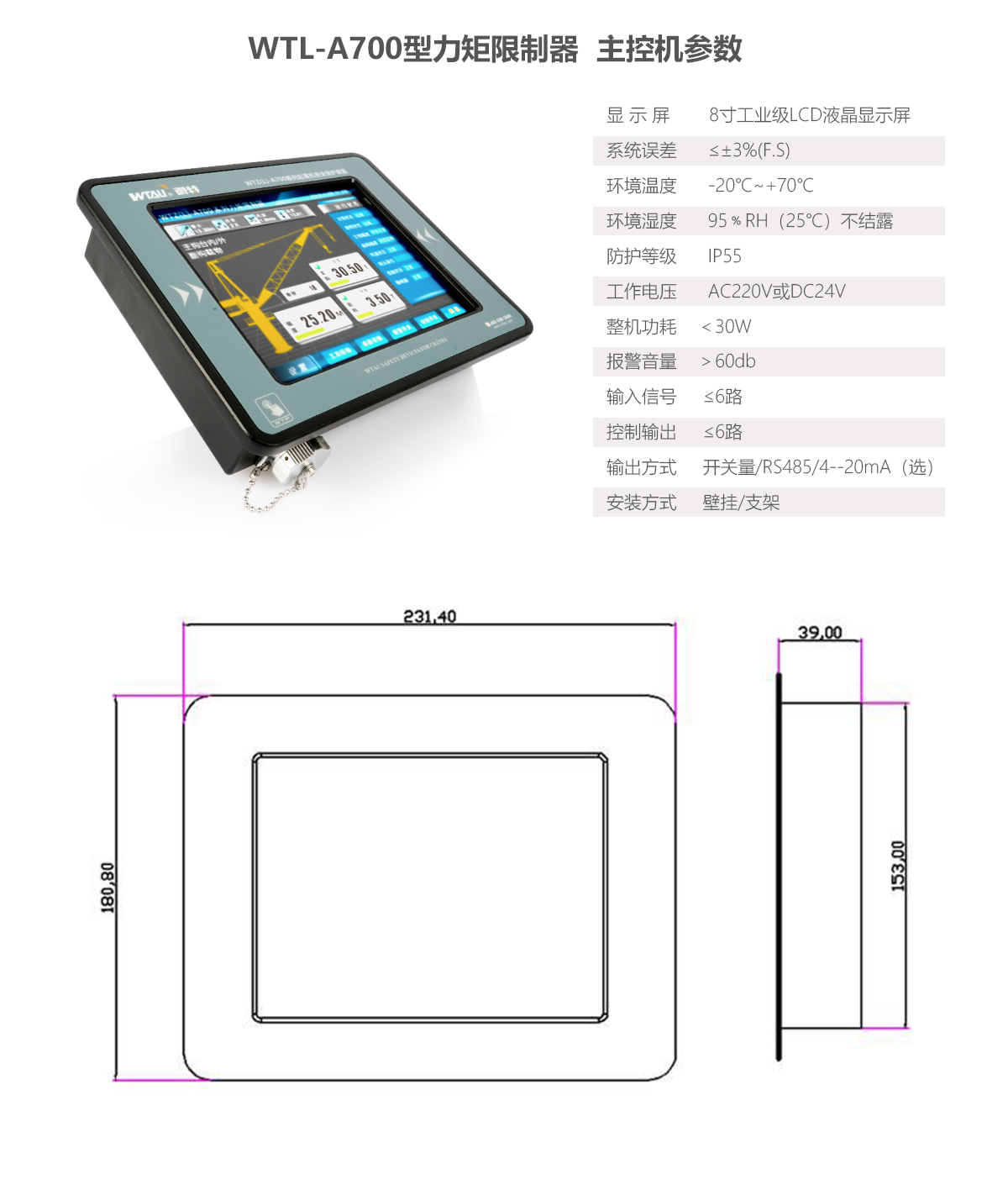 WTL-A700力矩限制器是微特研發(fā)生產(chǎn)的新一代高性能觸摸屏式力矩限制器,投放市場近10年來,在國內(nèi)外重要大型起重設(shè)備上使用反饋良好。