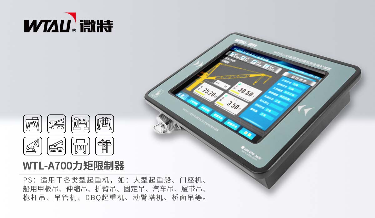 WTL-A700力矩限制器適用于各類型起重機,如:大型起重船、門座機、船用甲板吊、伸縮吊、折臂吊、固定吊、汽車吊、履帶吊、桅桿吊、吊管機、DBQ起重機、動臂塔機、橋面吊等。