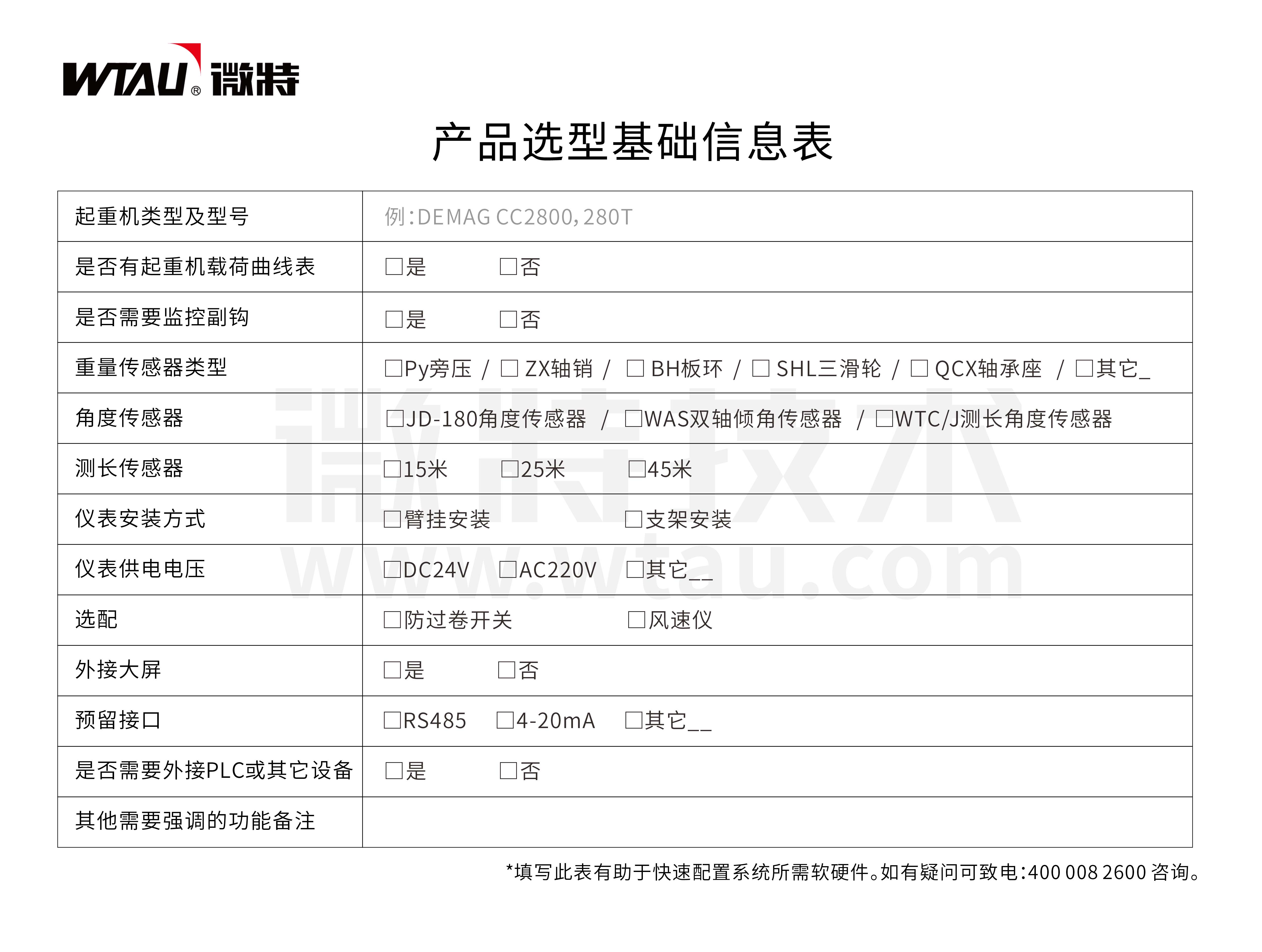 當(dāng)用戶在選型過程中未能找到合適的力矩限制器解決方案時(shí),可選擇與我司溝通選擇非標(biāo)定制的力矩限制器。定制力矩限制器可根據(jù)實(shí)際需求選擇適用的力矩限制器儀表,常用WTL-A700或WTL-A200力矩限制器儀表作為顯示儀表,用戶也可選擇其它型號(hào)。