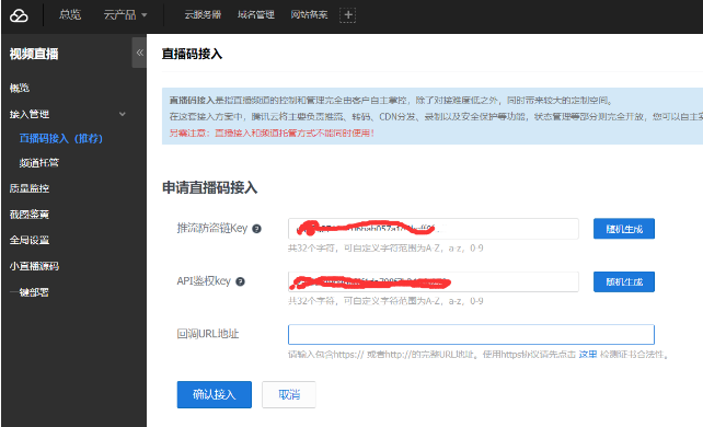 點(diǎn)擊【推流生成器】獲得直播推流地址,下面會具體列出【推流地址】,播放地址等,可以根據(jù)自定義的ID,生成一批推流地址,然后配置到服務(wù)器通道CDN地址中