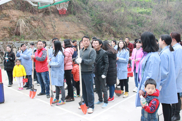 上午8:30,微特電子員工及員工家屬在后山籃球場集合,分發(fā)植樹工具及小樹苗。