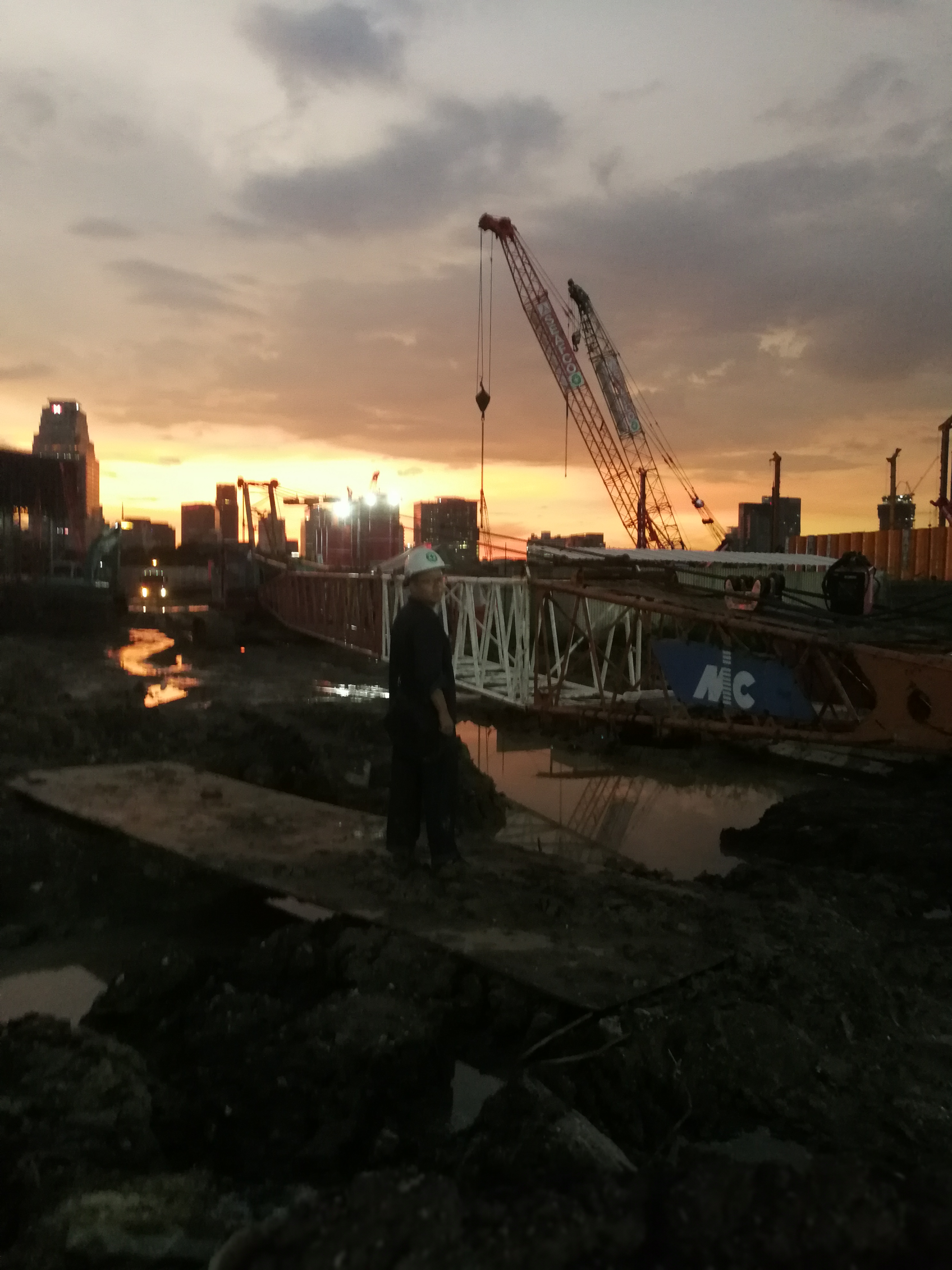 北京時間晚上22點22分,曼谷時間晚上21點22分,出發(fā)去工地