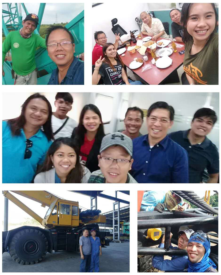 第一次來菲,恰逢這里的雨季,這里的雨水就像熱戀里情人間的思戀——驟然而來,綿綿不絕。因此,留給我們施工的時間顯得彌足珍貴。我們顧不上腳下的淤泥,擼起袖子加油干。所安裝的第一臺起重機力矩限制器就順利通過了當(dāng)?shù)仳炣嚬俚臋z驗,贏得了客戶的信任。