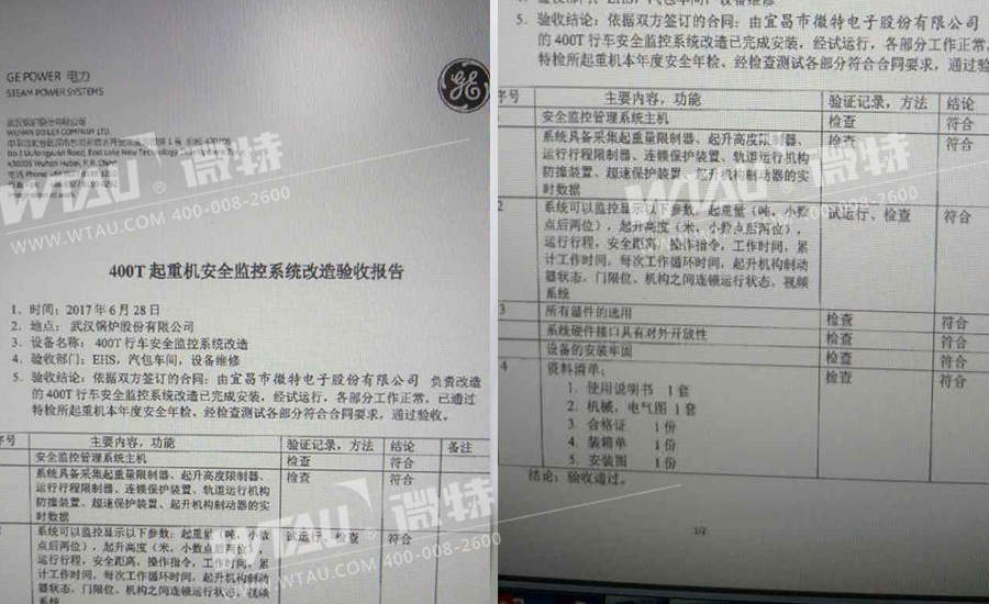 繼2016年GE集團阿爾斯通高壓電器設(shè)備(武漢)有限公司400t橋機監(jiān)控系統(tǒng)項目順利完工后,2017年4月份GE公司在武漢的又一重大起重機安全監(jiān)控系統(tǒng)改造項目成功落戶微特電子并順利驗收。