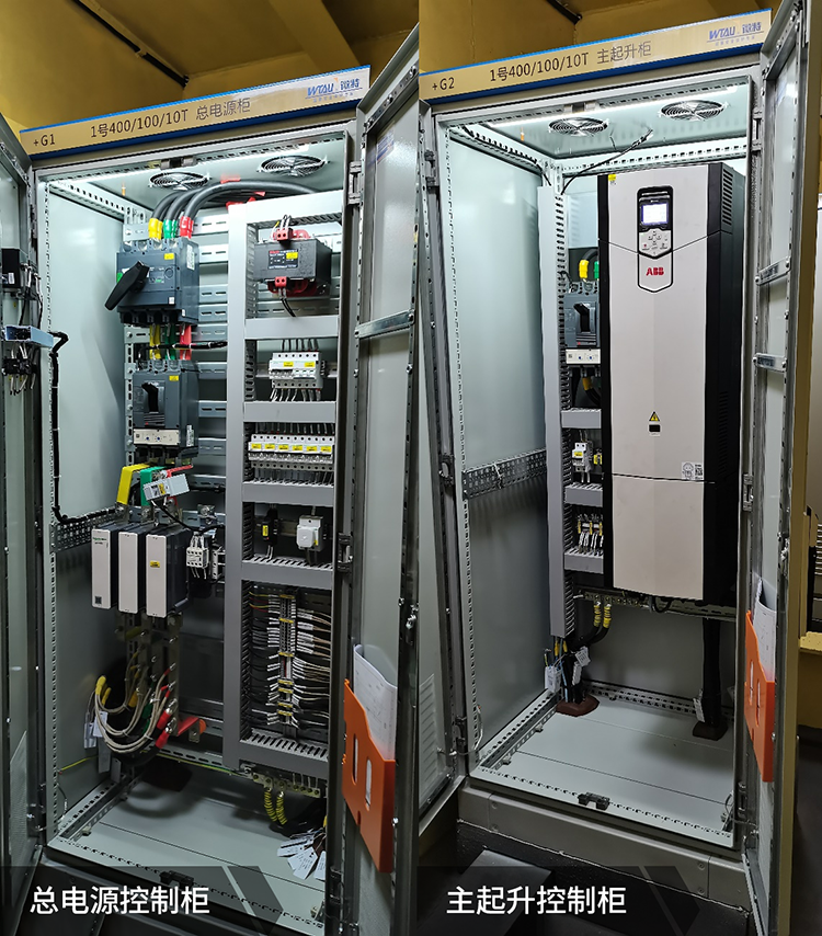 2021年秋季,由微特技術(shù)有限公司承接三板溪電廠主廠房400T/100T/10T橋機(jī)控制系統(tǒng)改造正式開工,范圍主要包括2臺(tái)400T/100T/10T橋式起重機(jī)整車控制系統(tǒng)改造以及載荷試驗(yàn)??刂葡到y(tǒng)改造包含PLC控制柜、總電源控制柜、主起升控制機(jī)構(gòu)、大車控制機(jī)構(gòu)、小車控制機(jī)構(gòu)、電動(dòng)葫蘆控制機(jī)構(gòu)、聯(lián)動(dòng)臺(tái)、照明控制箱、控制系統(tǒng)各元器件、電纜更換和調(diào)試。