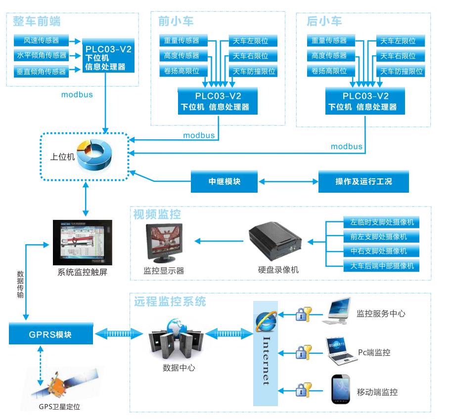 此次設備配套了數(shù)據(jù)監(jiān)控和視頻監(jiān)控,視頻監(jiān)控布置在吊機各個安全隱患較大的位置,并在司機室安裝了帶有語音對講功能的半球機。