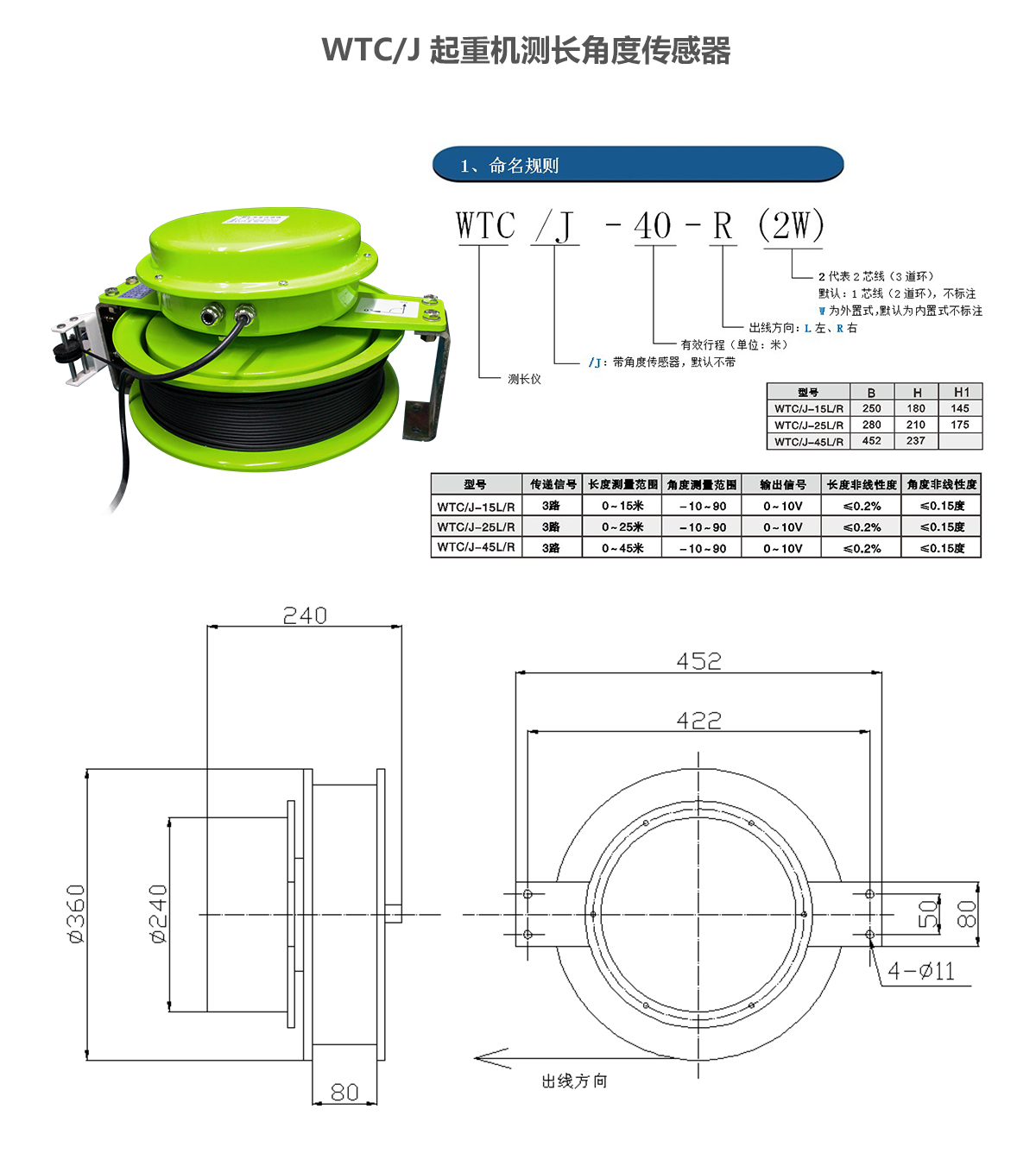 WTC/J起重機(jī)測(cè)長(zhǎng)角度傳感器適用于具有伸縮吊的各類起重或其它類型機(jī)械。